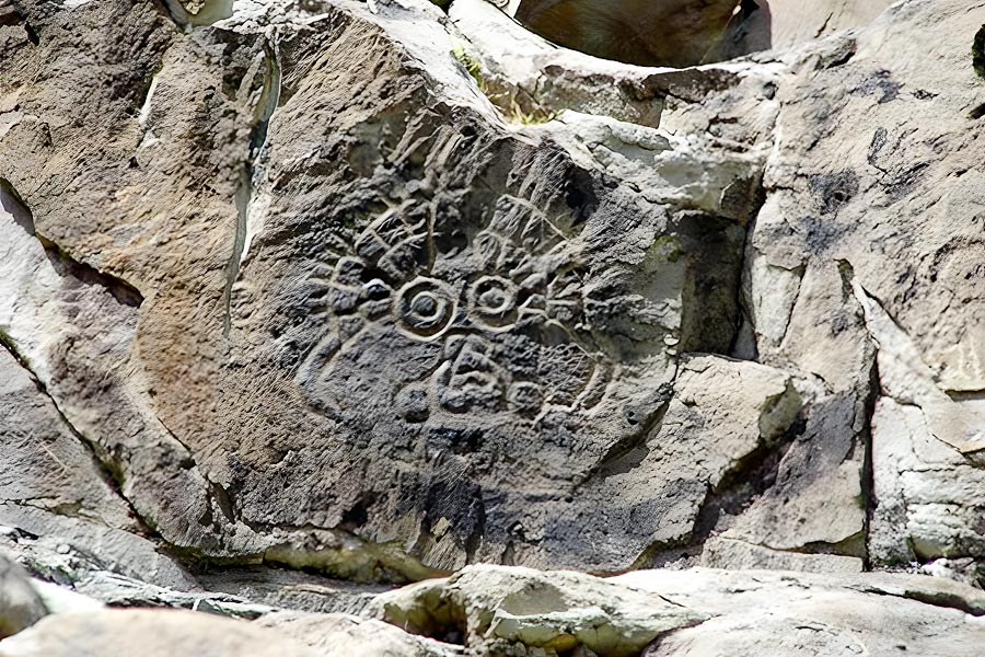 賀蘭県西賀蘭口の中にある。 賀蘭山は、寧夏平原西部の障壁、古くから、匈奴、突厥、党項、トルファン、モンゴルなど古代少数民族が此処で遊牧、狩猟していた。北側の石嘴山から、南の中衛までの10あまりの山に大量の岩画が発見された。約600メートルの谷の両側の岩肌に、約300の人頭像、馬、ロバ、牛、羊及び狩人が描かれ、古代の人々の生活様式、宗教などが伺える。 これらの岩画は、古代賀蘭山地域少数民族の歴史を研究するのに大変貴重な史料となっている。
