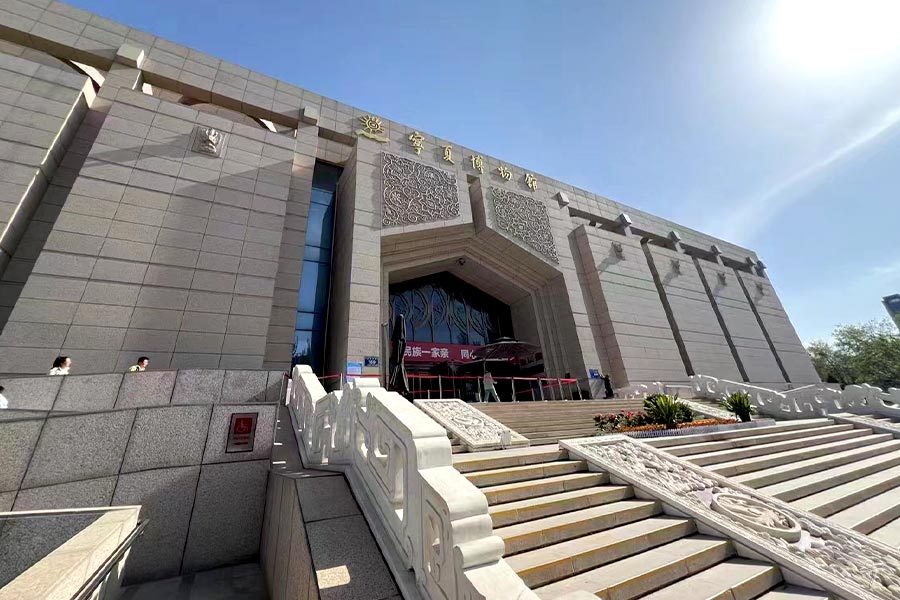 2008年に寧夏回族自治区成立50周年を記念してオープンした博物館。市の中心部からはやや離れているが、広々とした3回建てで、自治区の歴史から現代の産業、西夏時代の出土品の展示、回族文化の紹介など、充実した内容ながら無料で開放されているので、あず列価値はある。かつて承天寺塔にあった、寧夏回族自治区博物館に収蔵されていた文物もここに展示。期間限定の企画展なども行われている。
