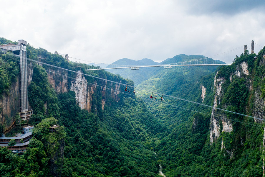 10:00-12:30 世界一の高さを誇る「ガラスの吊り橋」を見物。大峡谷エレベーターにて下山、「大峡谷」散策をお楽しみ下さい。